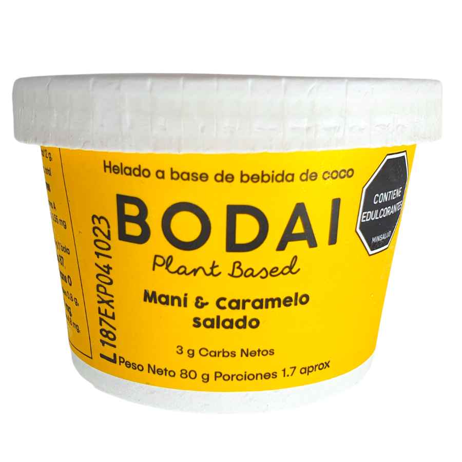 *. Helado vegano con coco, maní y caramelo salado.